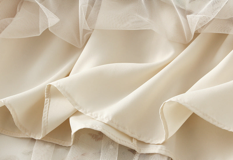3D Floral Appliqué Mesh Skirt in Champagne Bloom - 24