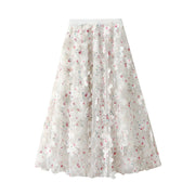 3D Floral Appliqué Mesh Skirt in Morning Haze