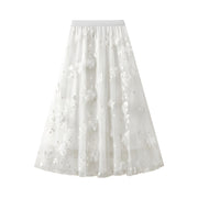 Flower Embellished and Embroidered Mesh A-Line Skirt With Satin Lining - 8692_WHITE - 24