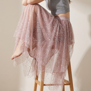 Fluffy Star Sequin Irregular Mesh And Velvet Skirt - 0310_PINK - 24