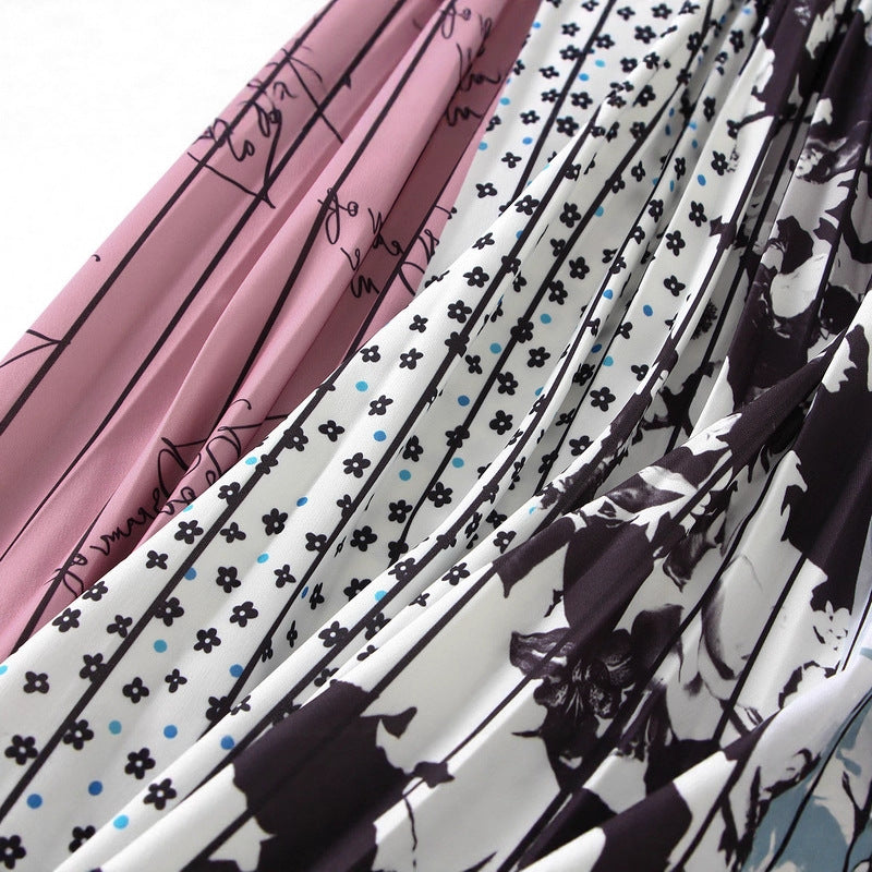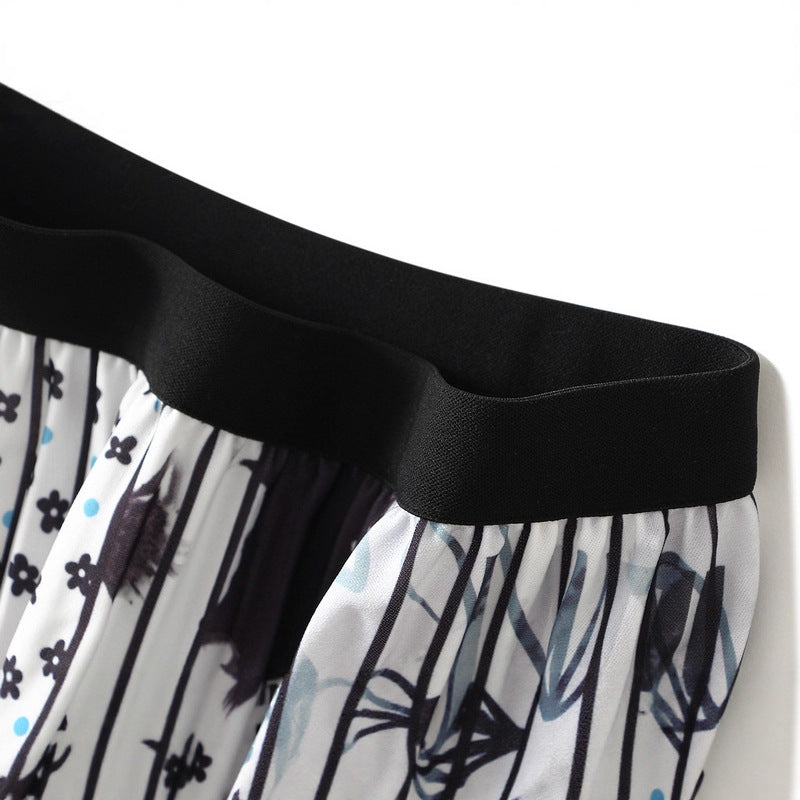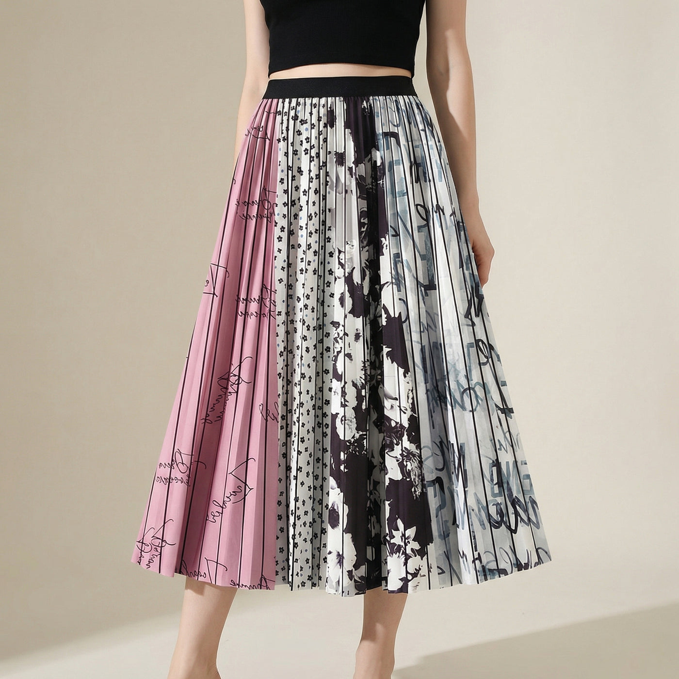 Graffiti Print Pleated Satin Chiffon Skirt - 24