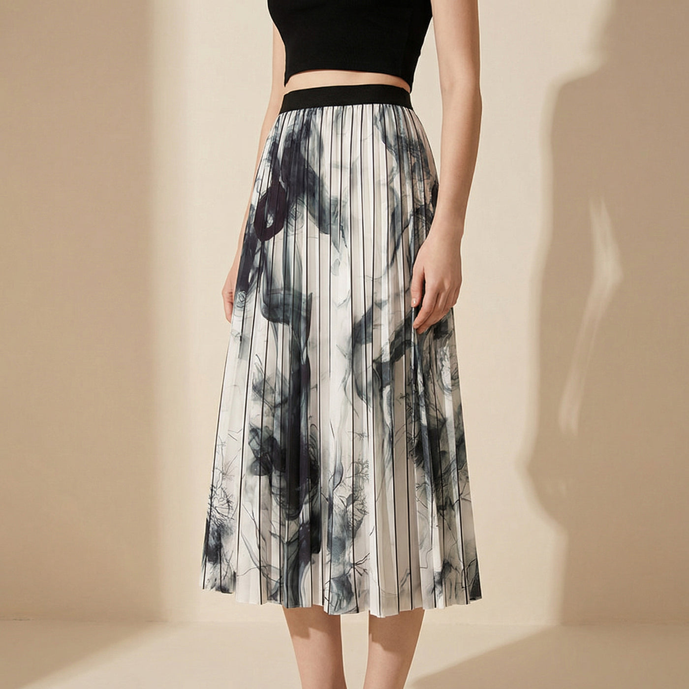 Ink-Painted Print Chiffon Satin Skirt