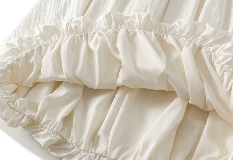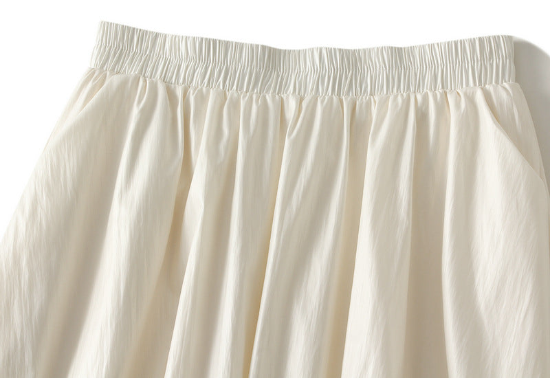 Japanese Bubble Hem PU Leather Skirt with Pocket in Apricot