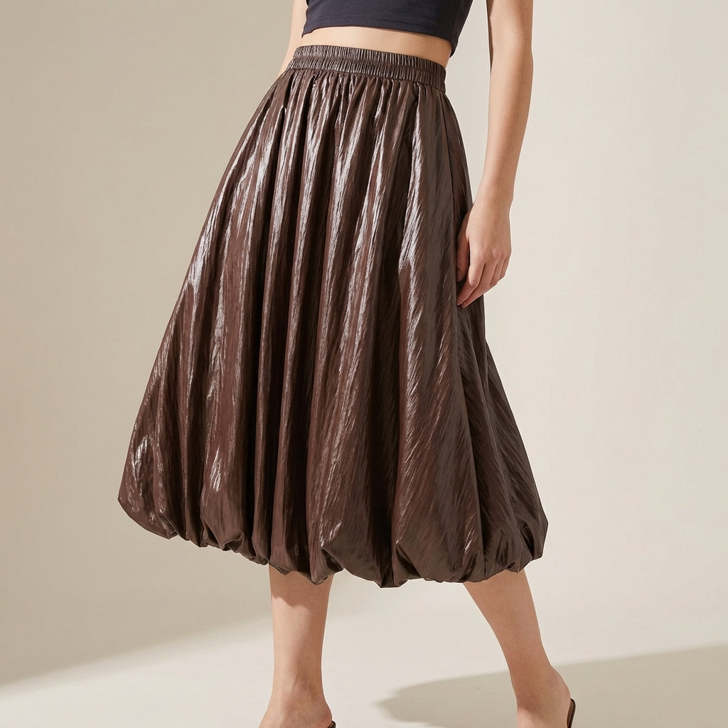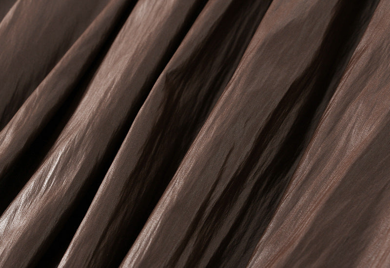 Japanese Bubble Hem PU Leather Skirt with Pocket in Coffee