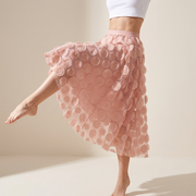 Polka Dot Hepburn Style Umbrella Mesh Skirt - 0931_PINK - 24