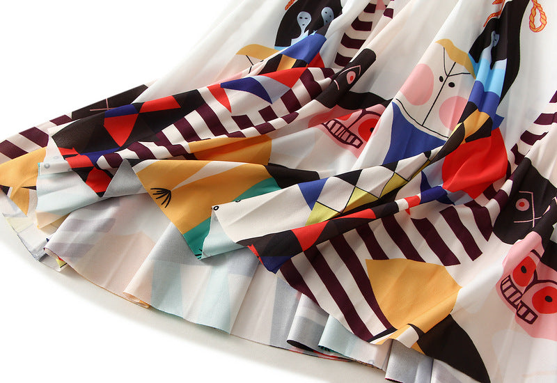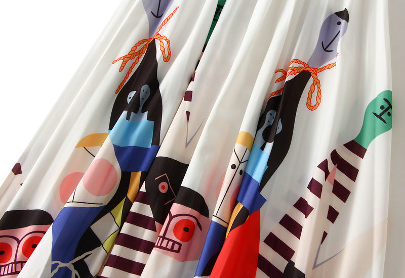 Printed Cartoon Satin Chiffon Skirt