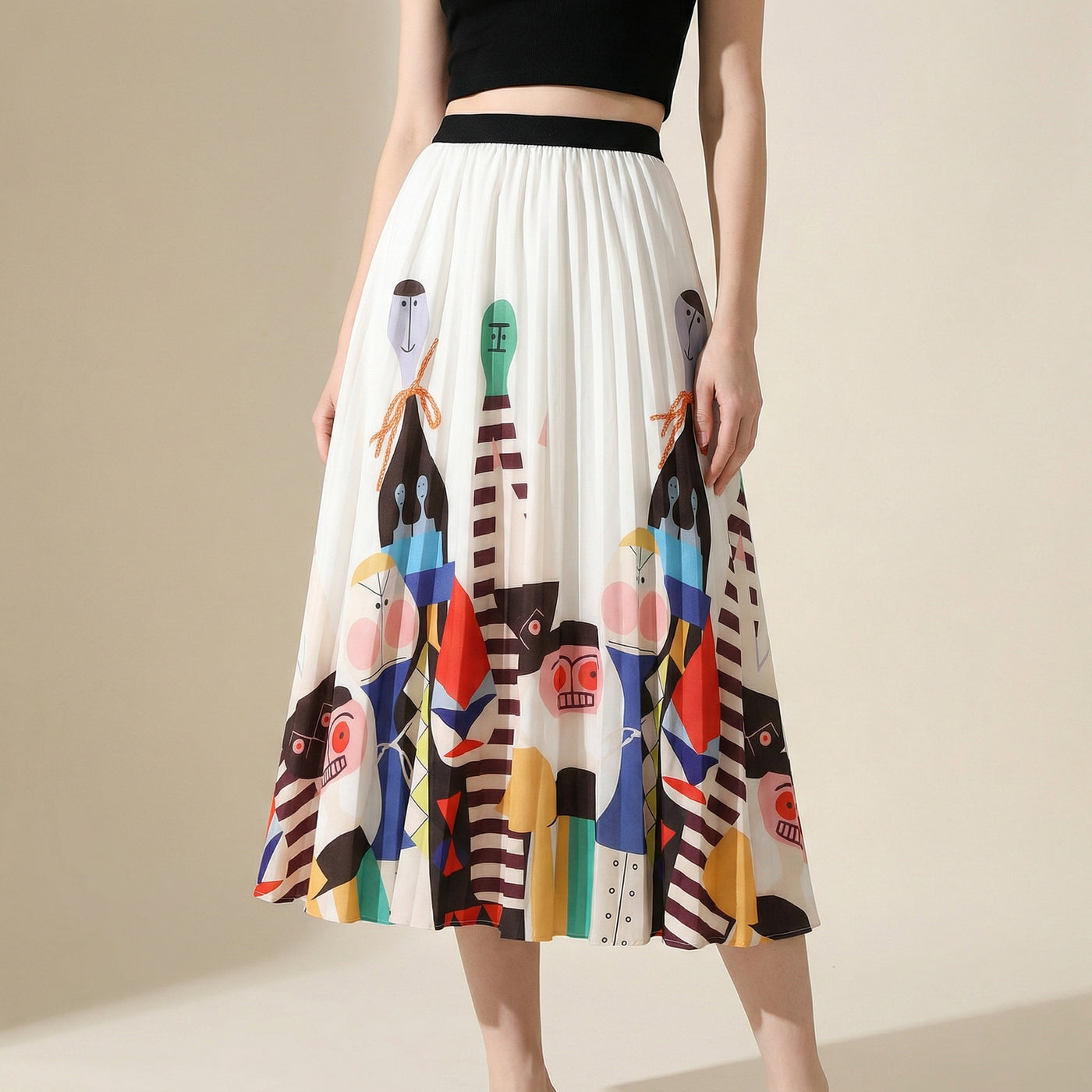 Printed Cartoon Satin Chiffon Skirt - 24