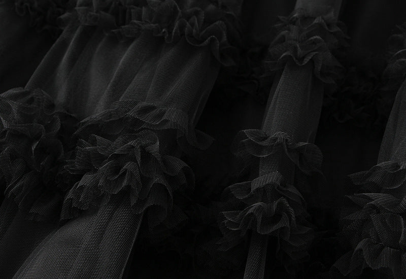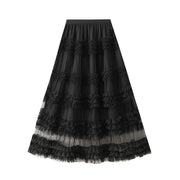 Ruffled Tulle Maxi Skirt in Black - BLACK / 24