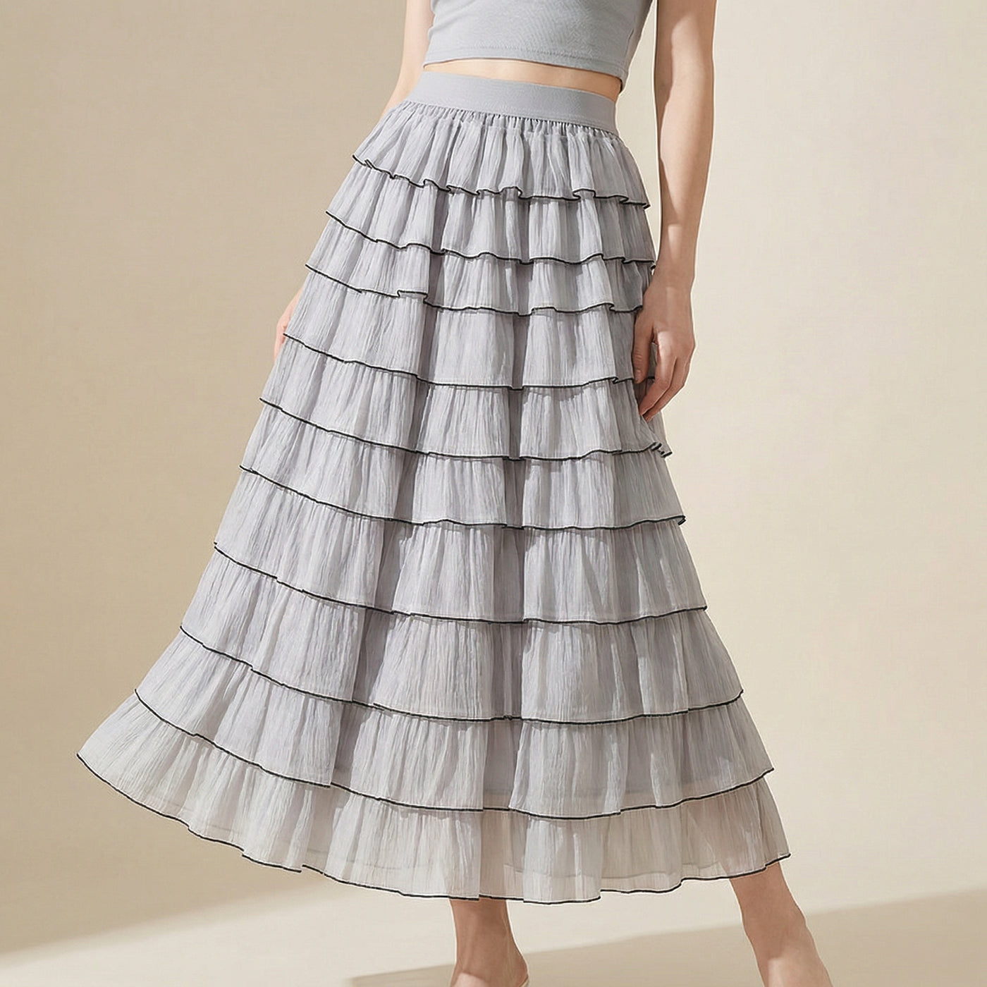 Shadow Line Layered Skirt - GREY - 24